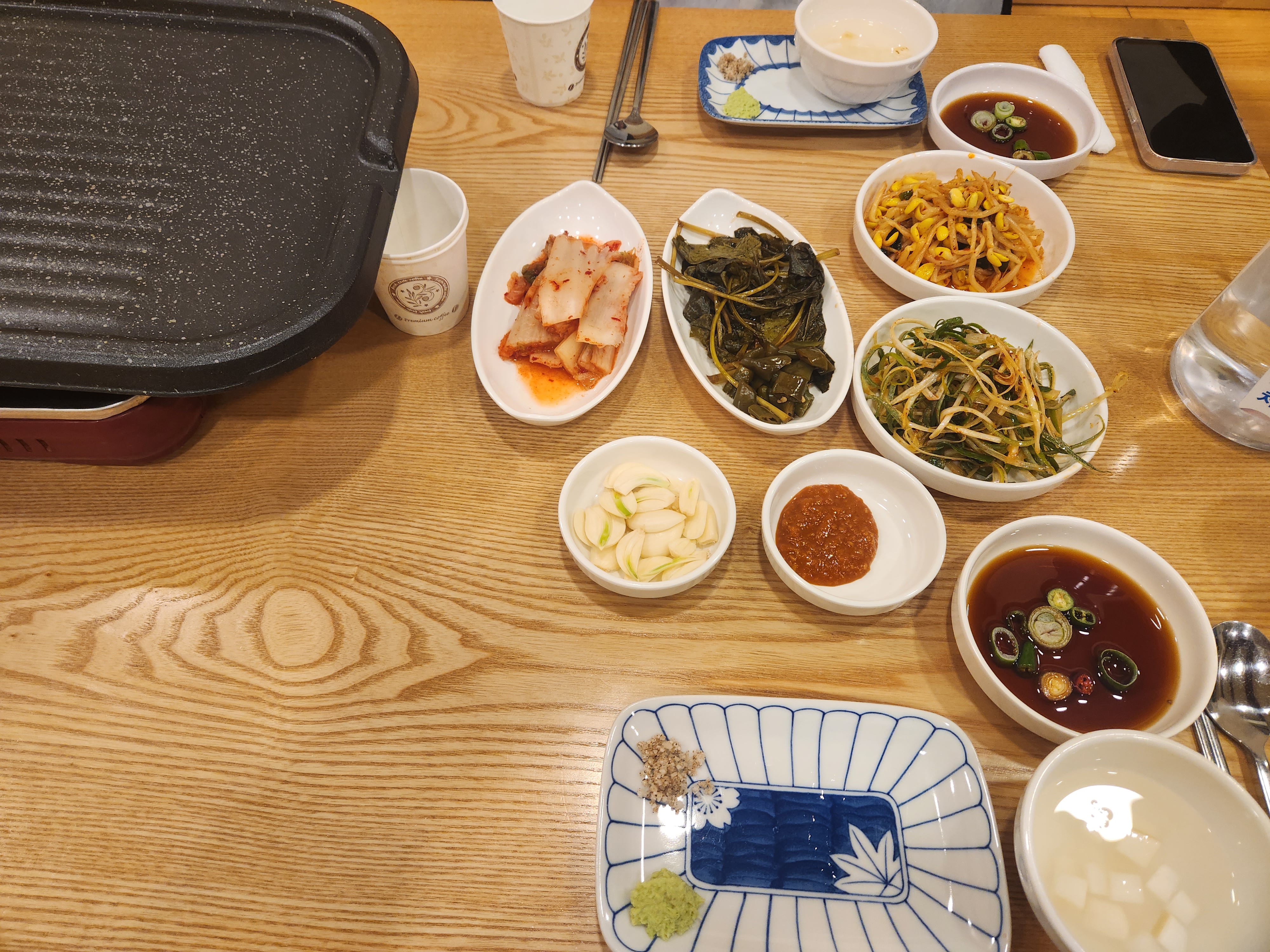 기본 상차림과 쌈채소 그리고 고기입니다. 꽤 정갈하게 나옵니다.